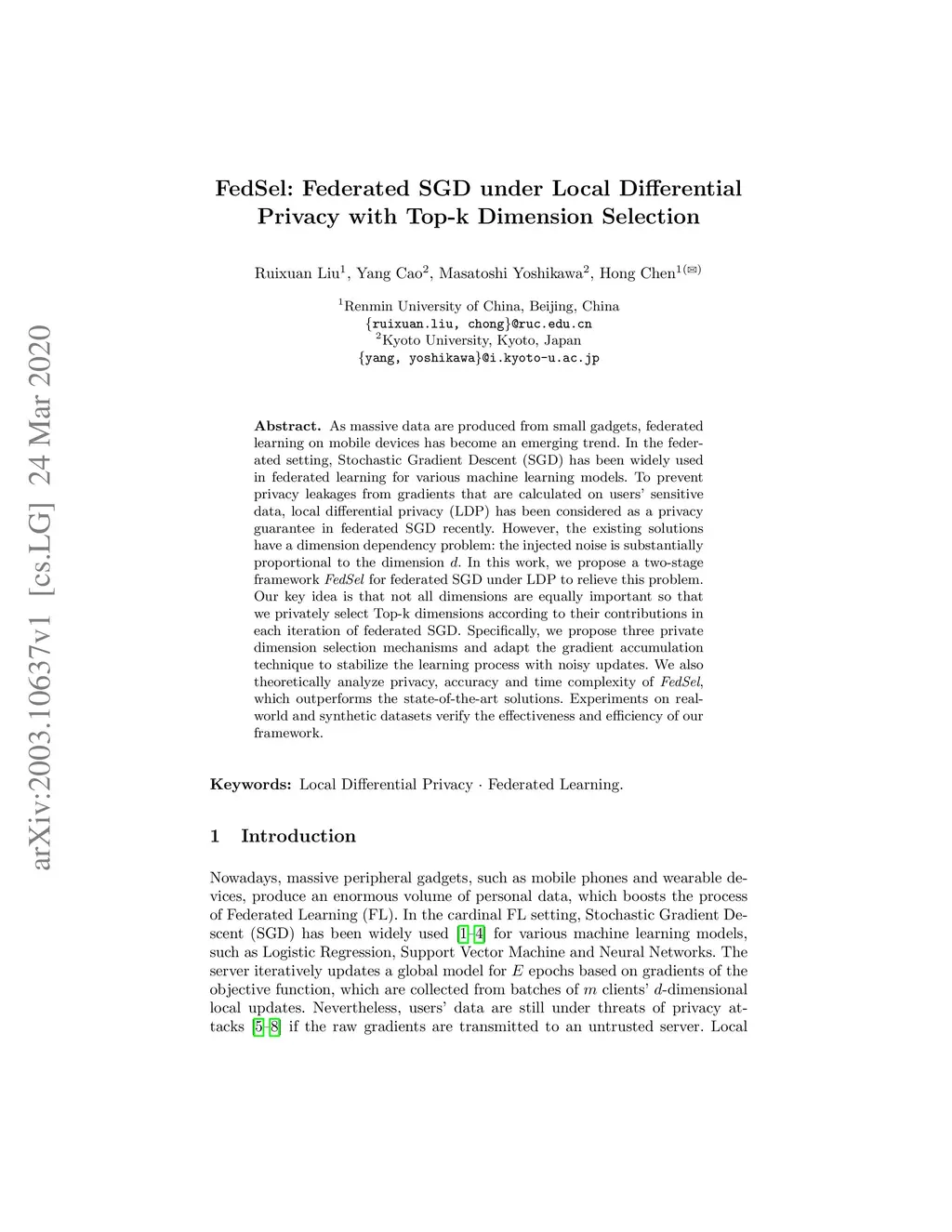 FedSel: Federated SGD under Local Differential Privacy with Top-k