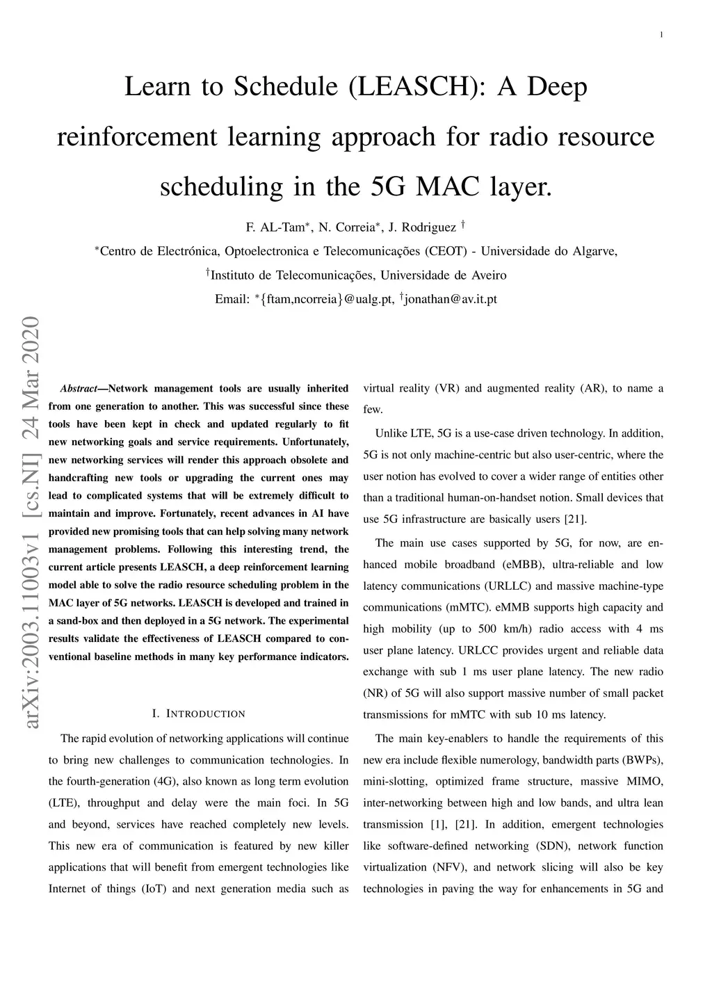 Network management tools are usually inherited from one generation to another. This was successful since these tools have been kept in check and updated regularly to fit new networking goals and service requirements. Unfortunately, new networking services will render this approach obsolete and handcrafting new tools or upgrading the current ones may lead to complicated systems that will be extremely difficult to maintain and improve. Fortunately, recent advances in AI have provided new promising tools that can help solving many network management problems. Following this interesting trend, the current article presents LEASCH, a deep reinforcement learning model able to solve the radio resource scheduling problem in the MAC layer of 5G networks. LEASCH is developed and trained in a sand-box and then deployed in a 5G network. The experimental results validate the effectiveness of LEASCH compared to conventional baseline methods in many key performance indicators.