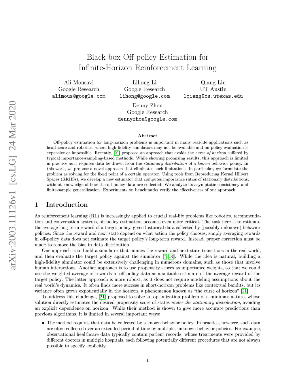 Black-box Off-policy Estimation for Infinite-Horizon Reinforcement