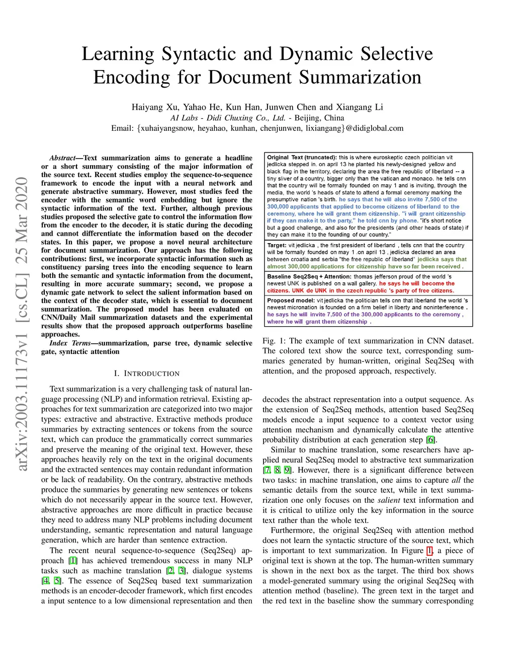 Learning Syntactic and Dynamic Selective Encoding for Document