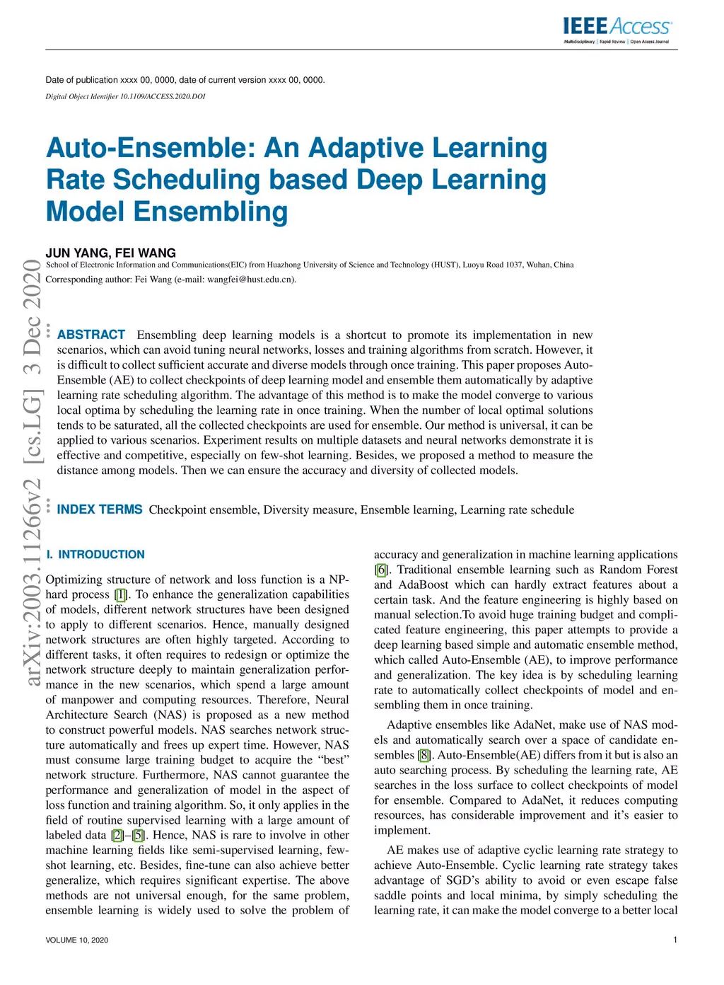 Auto-Ensemble: An Adaptive Learning Rate Scheduling based Deep Learning