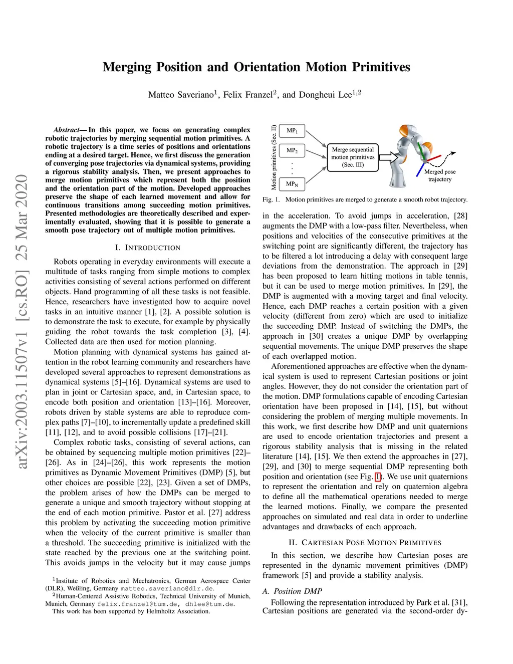 Merging Position and Orientation Motion Primitives