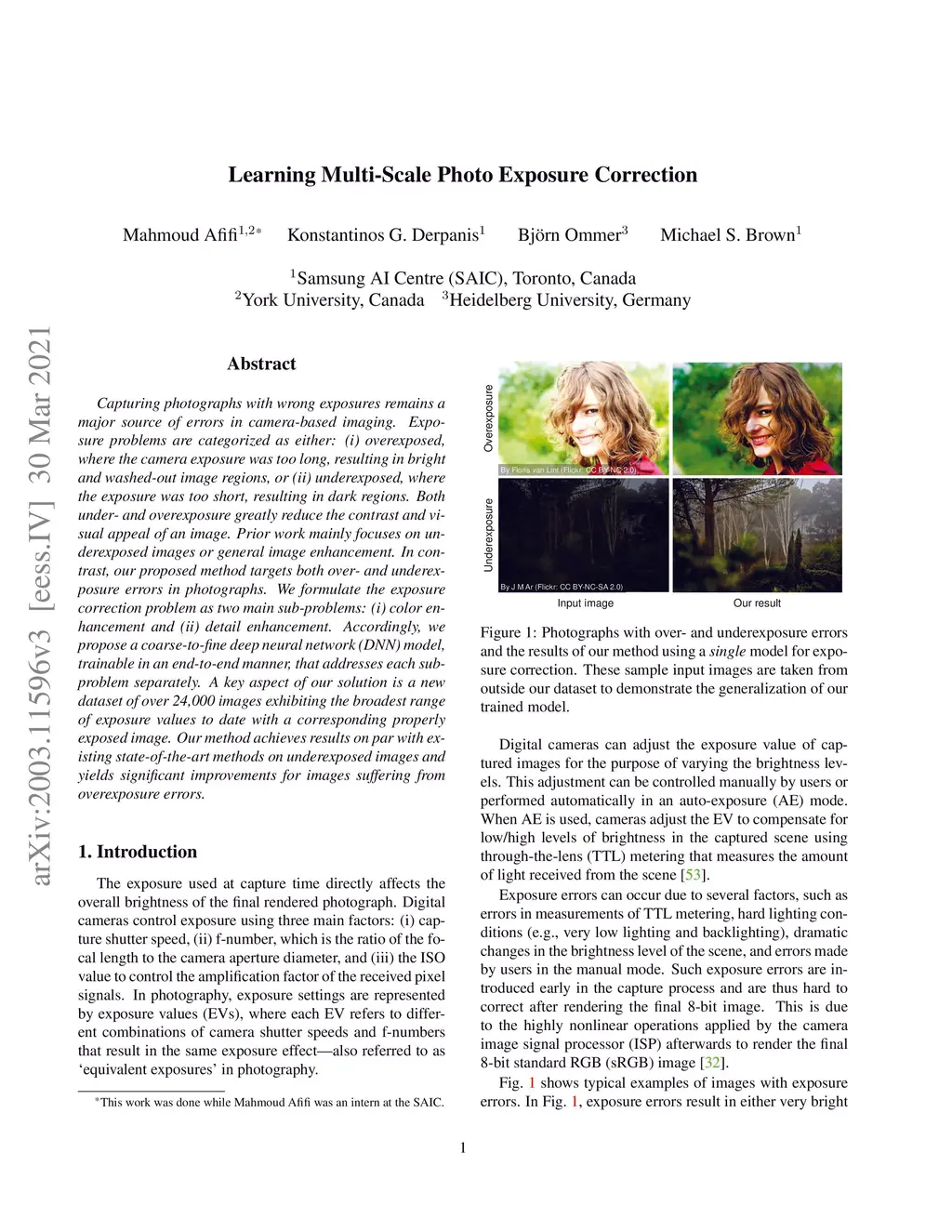 Capturing photographs with wrong exposures remains a major source of errors in camera-based imaging. Exposure problems are categorized as either: (i) overexposed, where the camera exposure was too long, resulting in bright and washed-out image regions, or (ii) underexposed, where the exposure was too short, resulting in dark regions. Both under- and overexposure greatly reduce the contrast and visual appeal of an image. Prior work mainly focuses on underexposed images or general image enhancement. In contrast, our proposed method targets both over- and underexposure errors in photographs. We formulate the exposure correction problem as two main sub-problems: (i) color enhancement and (ii) detail enhancement. Accordingly, we propose a coarse-to-fine deep neural network (DNN) model, trainable in an end-to-end manner, that addresses each sub-problem separately. A key aspect of our solution is a new dataset of over 24,000 images exhibiting the broadest range of exposure values to date with a corresponding properly exposed image. Our method achieves results on par with existing state-of-the-art methods on underexposed images and yields significant improvements for images suffering from overexposure errors.
