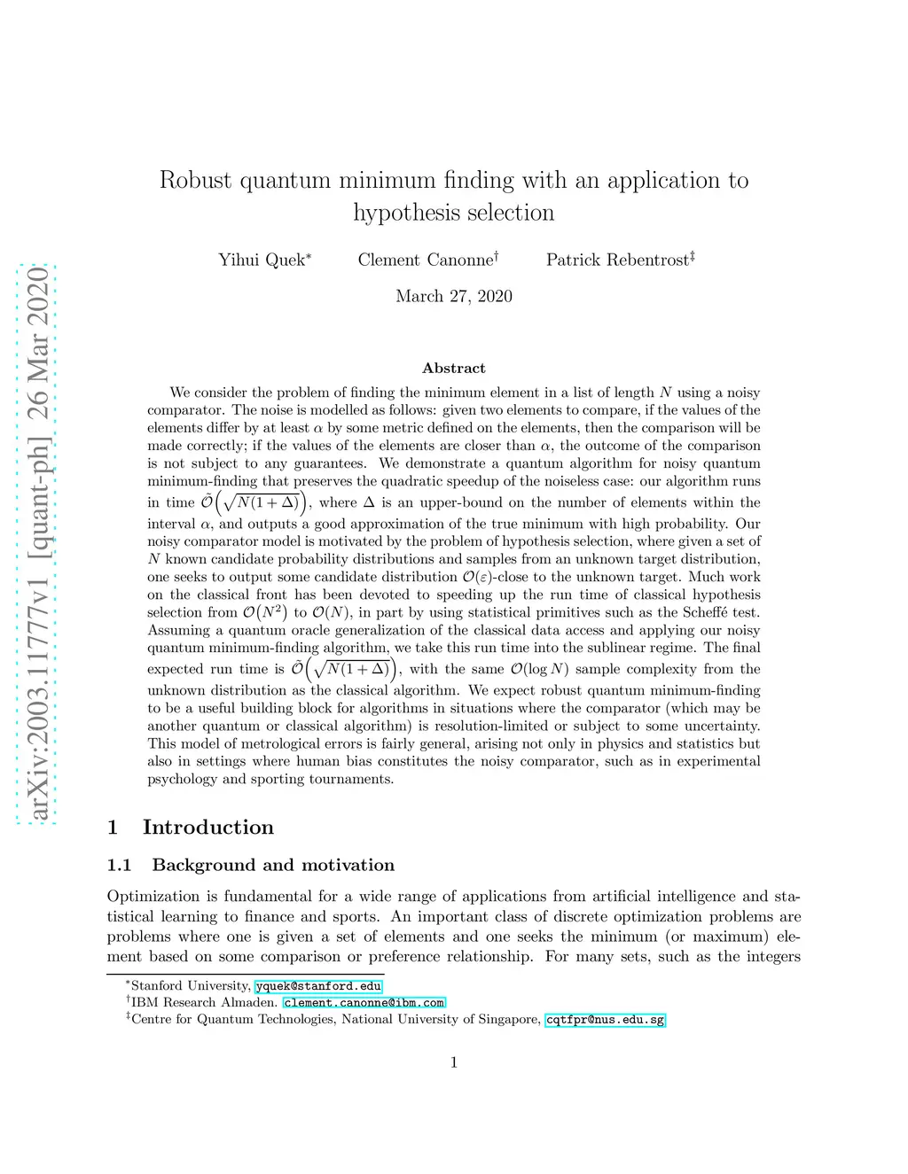Robust quantum minimum finding with an application to hypothesis