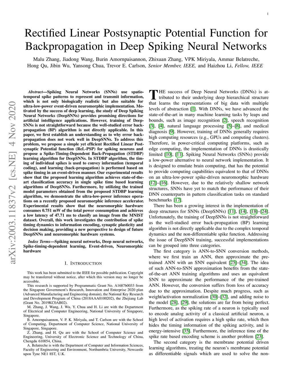 Rectified Linear Postsynaptic Potential Function for Backpropagation in