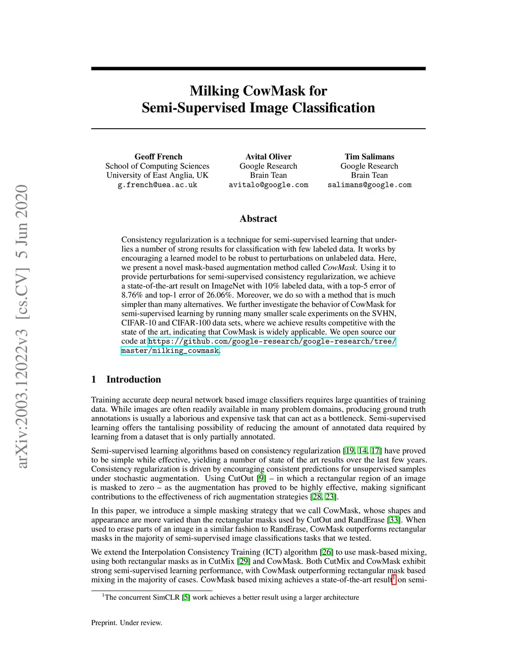Milking CowMask for Semi-Supervised Image Classification