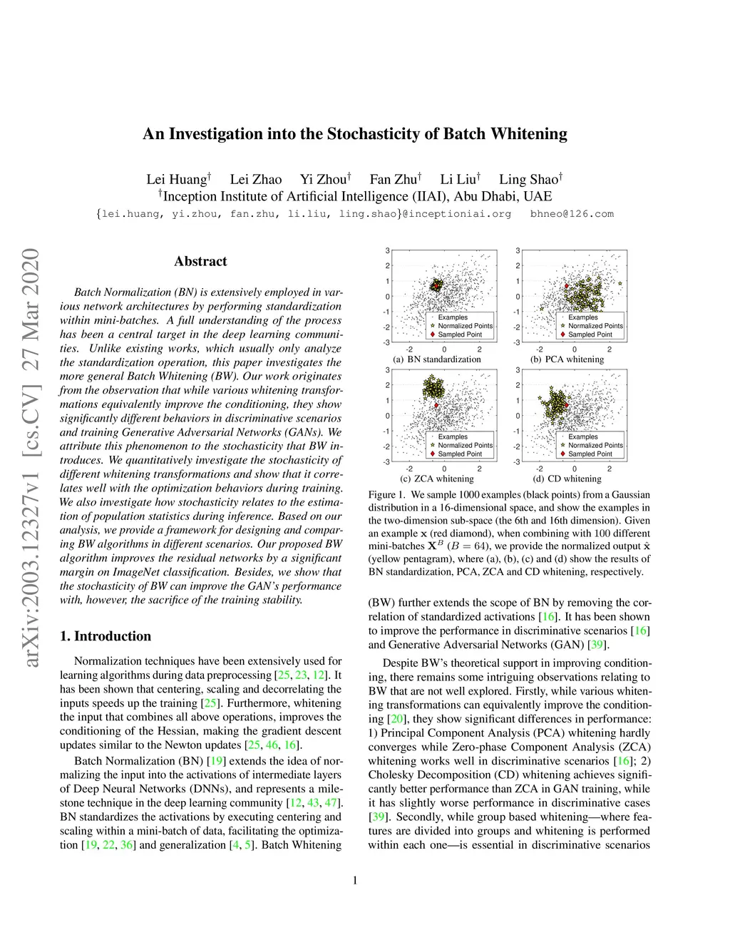 Batch Normalization (BN) is extensively employed in various network architectures by performing standardization within mini-batches. A full understanding of the process has been a central target in the deep learning communities. Unlike existing works, which usually only analyze the standardization operation, this paper investigates the more general Batch Whitening (BW). Our work originates from the observation that while various whitening transformations equivalently improve the conditioning, they show significantly different behaviors in discriminative scenarios and training Generative Adversarial Networks (GANs). We attribute this phenomenon to the stochasticity that BW introduces. We quantitatively investigate the stochasticity of different whitening transformations and show that it correlates well with the optimization behaviors during training. We also investigate how stochasticity relates to the estimation of population statistics during inference. Based on our analysis, we provide a framework for designing and comparing BW algorithms in different scenarios. Our proposed BW algorithm improves the residual networks by a significant margin on ImageNet classification. Besides, we show that the stochasticity of BW can improve the GAN's performance with, however, the sacrifice of the training stability.