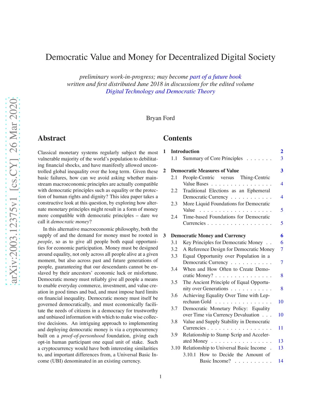 Democratic Value and Money for Decentralized Digital Society