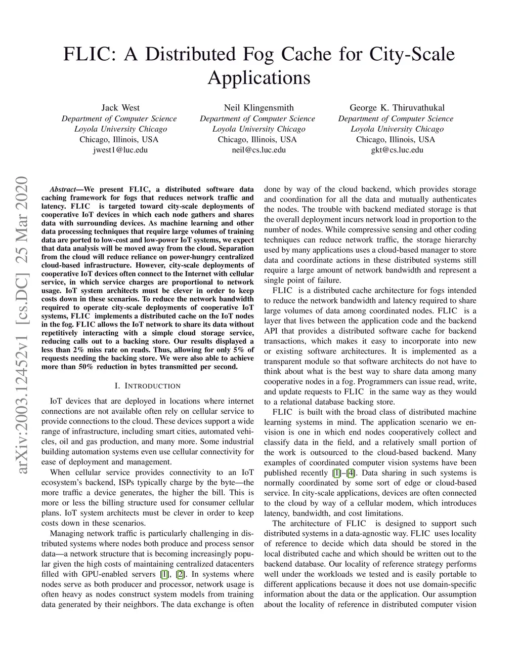 FLIC: A Distributed Fog Cache for City-Scale Applications