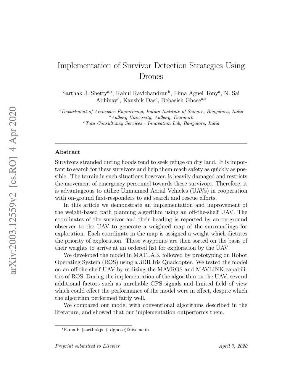 Implementation of Survivor Detection Strategies Using Drones