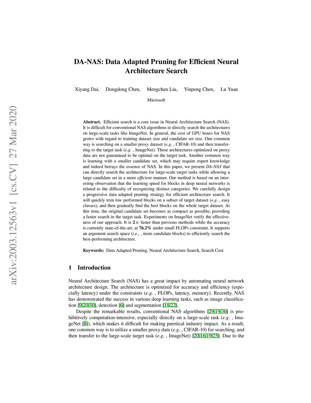 DA-NAS: Data Adapted Pruning for Efficient Neural Architecture Search