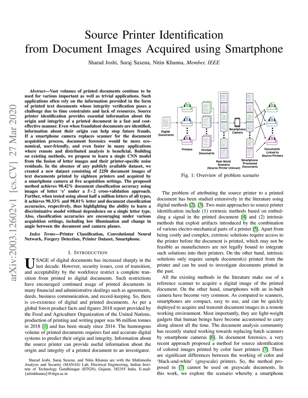 Source Printer Identification from Document Images Acquired using