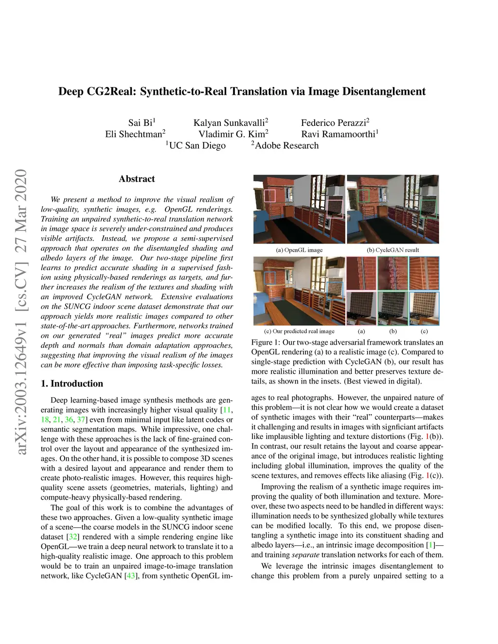 Deep CG2Real: Synthetic-to-Real Translation via Image Disentanglement