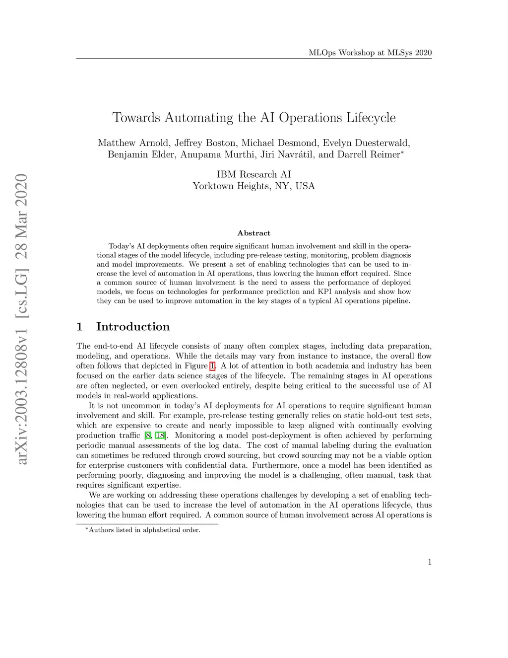 Today's AI deployments often require significant human involvement and skill in the operational stages of the model lifecycle, including pre-release testing, monitoring, problem diagnosis and model improvements. We present a set of enabling technologies that can be used to increase the level of automation in AI operations, thus lowering the human effort required. Since a common source of human involvement is the need to assess the performance of deployed models, we focus on technologies for performance prediction and KPI analysis and show how they can be used to improve automation in the key stages of a typical AI operations pipeline.