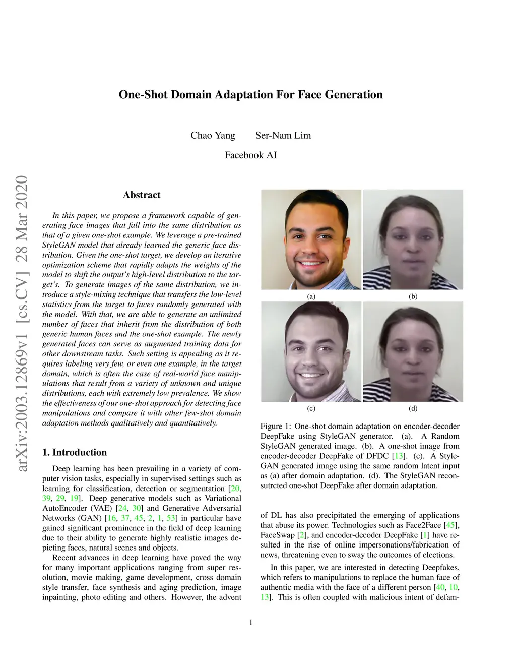 In this paper, we propose a framework capable of generating face images that fall into the same distribution as that of a given one-shot example. We leverage a pre-trained StyleGAN model that already learned the generic face distribution. Given the one-shot target, we develop an iterative optimization scheme that rapidly adapts the weights of the model to shift the output's high-level distribution to the target's. To generate images of the same distribution, we introduce a style-mixing technique that transfers the low-level statistics from the target to faces randomly generated with the model. With that, we are able to generate an unlimited number of faces that inherit from the distribution of both generic human faces and the one-shot example. The newly generated faces can serve as augmented training data for other downstream tasks. Such setting is appealing as it requires labeling very few, or even one example, in the target domain, which is often the case of real-world face manipulations that result from a variety of unknown and unique distributions, each with extremely low prevalence. We show the effectiveness of our one-shot approach for detecting face manipulations and compare it with other few-shot domain adaptation methods qualitatively and quantitatively.