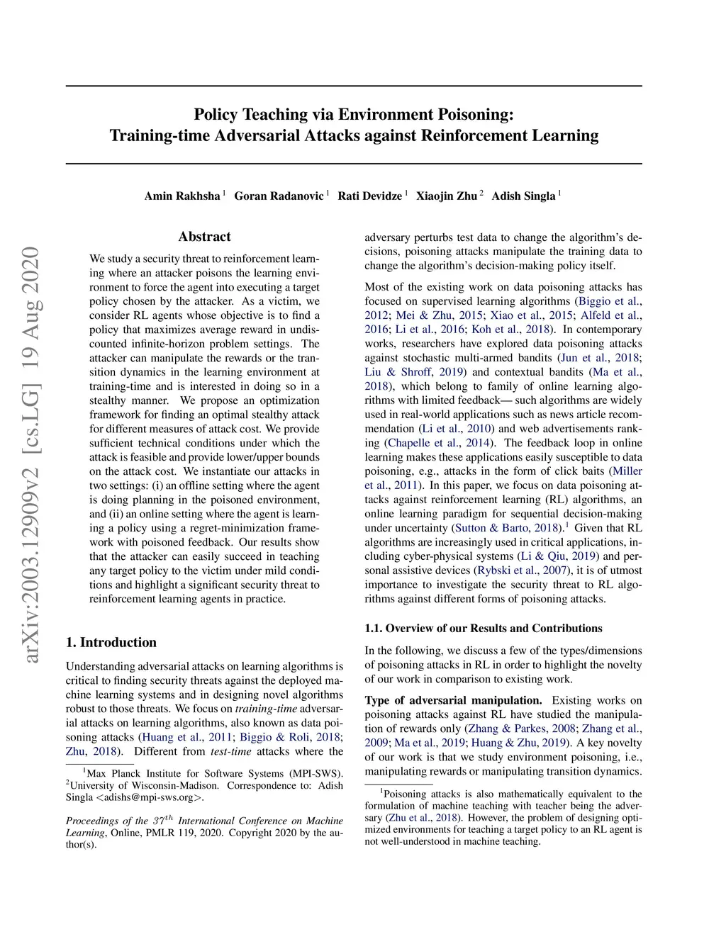 Attacks against Reinforcement Learning