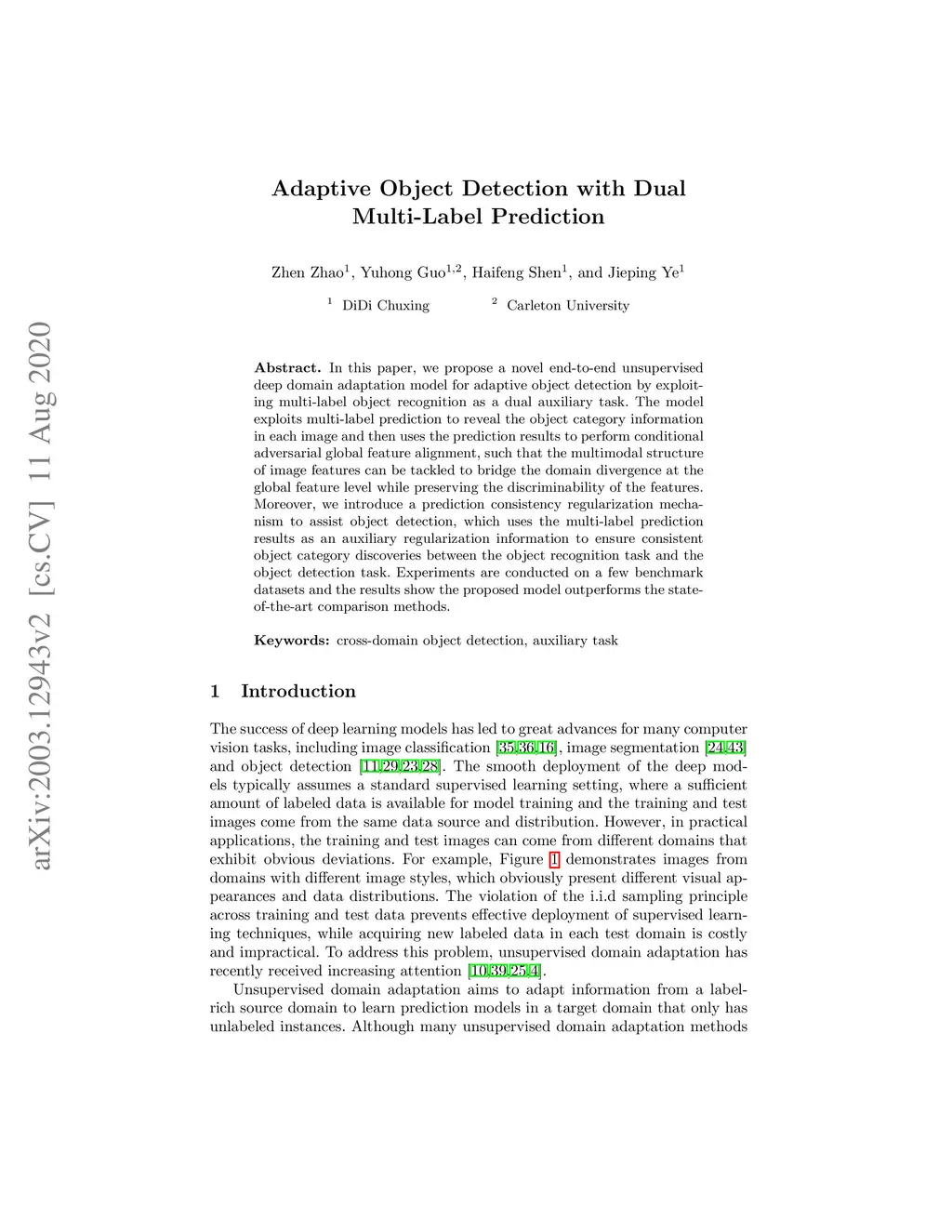 Adaptive Object Detection with Dual Multi-Label Prediction