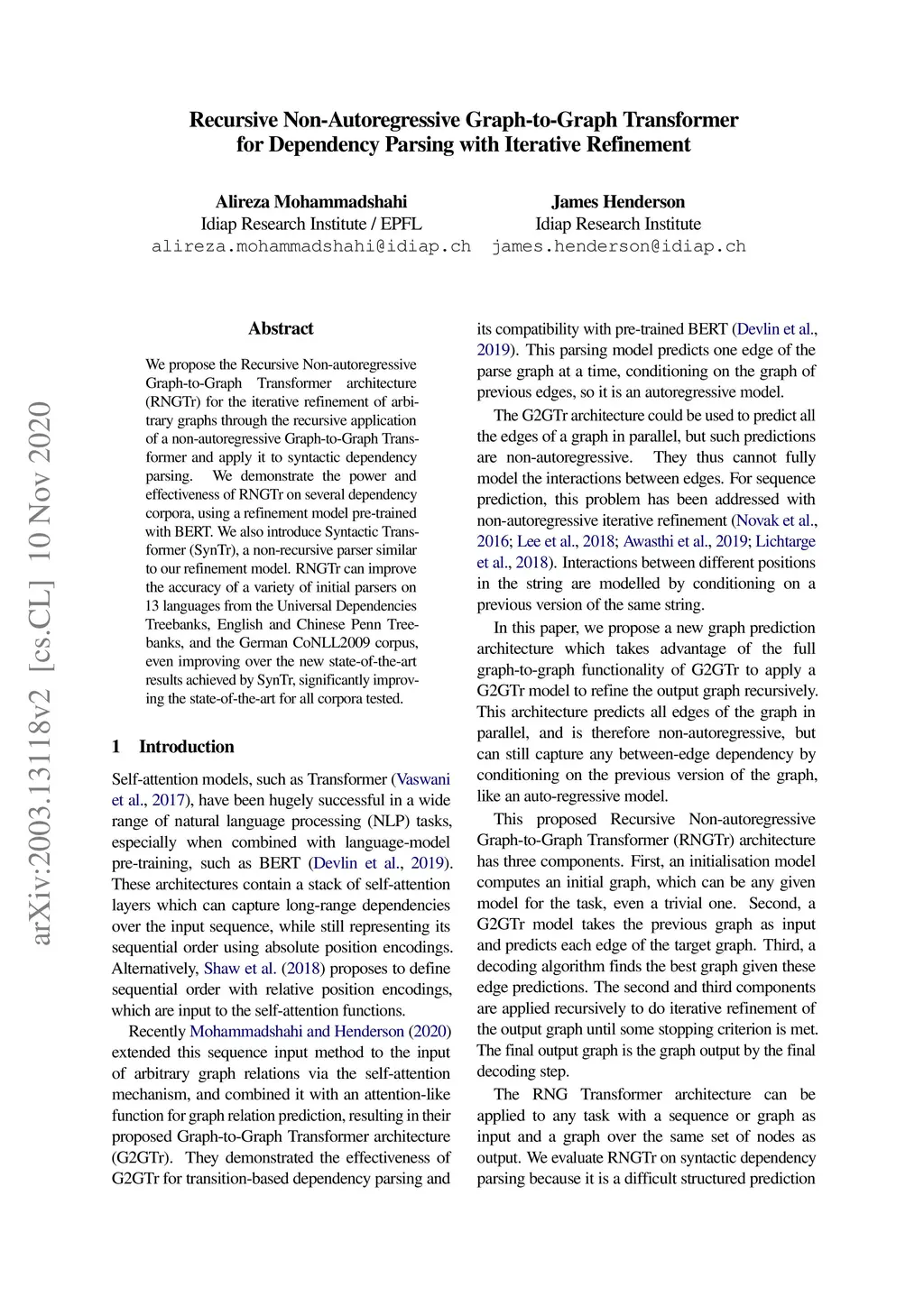 Recursive Non-Autoregressive Graph-to-Graph Transformer for Dependency