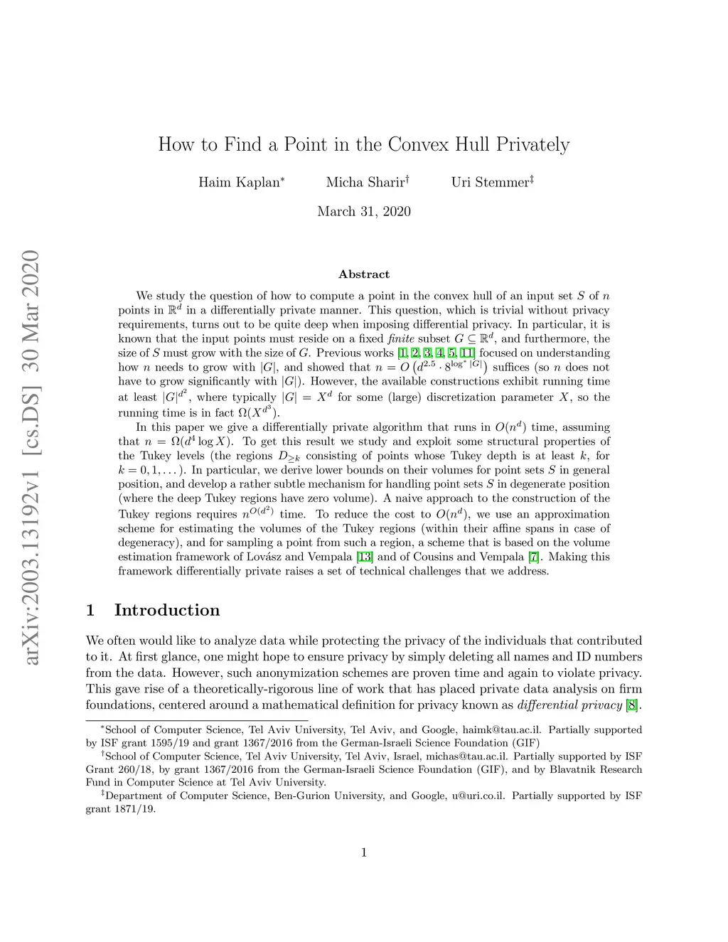 We study the question of how to compute a point in the convex hull of an input set of points in in a differentially private manner. This question, which is trivial non-privately, turns out to be quite deep when imposing differential privacy. In particular, it is known that the input points must reside on a fixed finite subset , and furthermore, the size of must grow with the size of . Previous works focused on understanding how needs to grow with , and showed that suffices (so does not have to grow significantly with ). However, the available constructions exhibit running time at least , where typically for some (large) discretization parameter , so the running time is in fact . In this paper we give a differentially private algorithm that runs in time, assuming that . To get this result we study and exploit some structural properties of the Tukey levels (the regions consisting of points whose Tukey depth is at least , for ). In particular, we derive lower bounds on their volumes for point sets in general position, and develop a rather subtle mechanism for handling point sets in degenerate position (where the deep Tukey regions have zero volume). A naive approach to the construction of the Tukey regions requires time. To reduce the cost to , we use an approximation scheme for estimating the volumes of the Tukey regions (within their affine spans in case of degeneracy), and for sampling a point from such a region, a scheme that is based on the volume estimation framework of Lov\ász and Vempala (FOCS 2003) and of Cousins and Vempala (STOC 2015). Making this framework differentially private raises a set of technical challenges that we address.