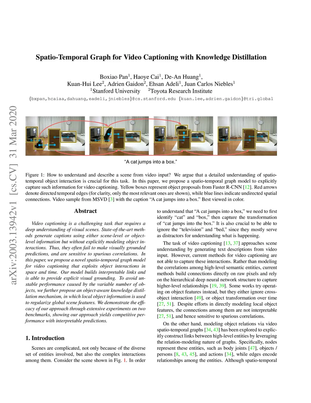 Spatio-Temporal Graph for Video Captioning with Knowledge Distillation