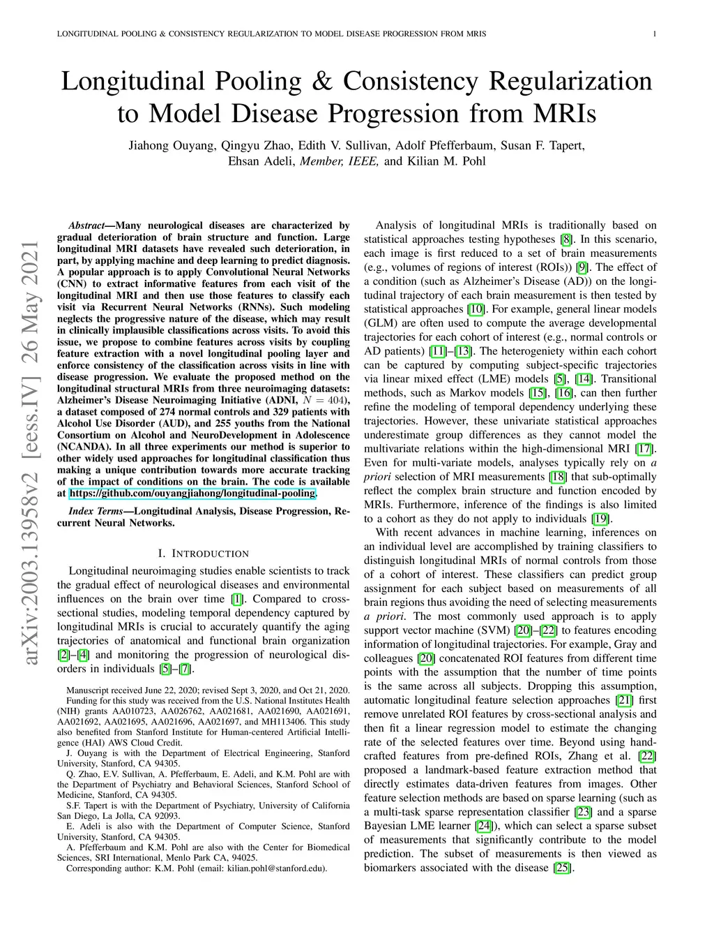 Longitudinal Pooling & Consistency Regularization to Model Disease