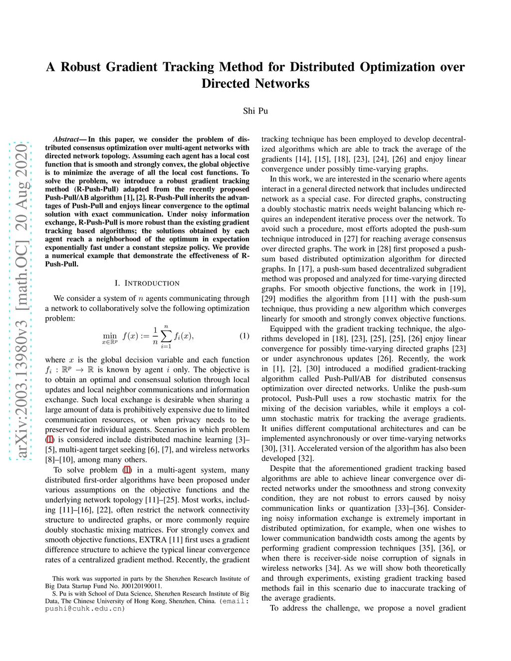 In this paper, we consider the problem of distributed consensus optimization over multi-agent networks with directed network topology. Assuming each agent has a local cost function that is smooth and strongly convex, the global objective is to minimize the average of all the local cost functions. To solve the problem, we introduce a robust gradient tracking method (R-Push-Pull) adapted from the recently proposed Push-Pull/AB algorithm. R-Push-Pull inherits the advantages of Push-Pull and enjoys linear convergence to the optimal solution with exact communication. Under noisy information exchange, R-Push-Pull is more robust than the existing gradient tracking based algorithms; the solutions obtained by each agent reach a neighborhood of the optimum in expectation exponentially fast under a constant stepsize policy. We provide a numerical example that demonstrate the effectiveness of R-Push-Pull.