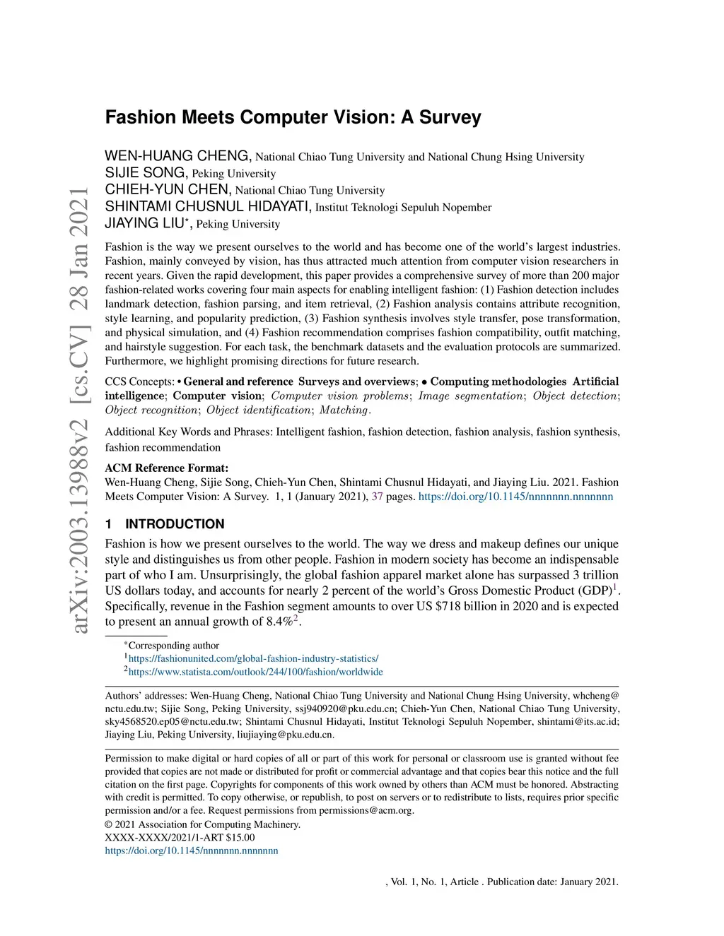 Fashion Meets Computer Vision: A Survey