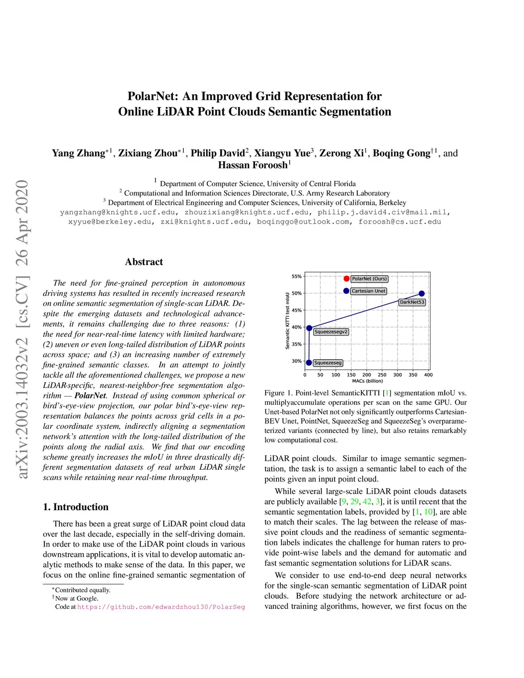 PolarNet: An Improved Grid Representation for Online LiDAR Point Clouds