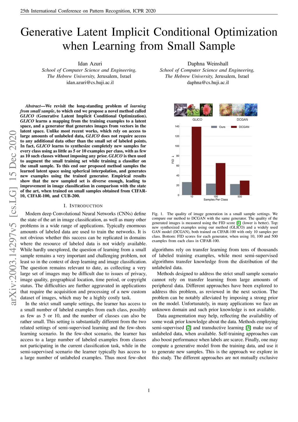 We revisit the long-standing problem of learning from a small sample, to which end we propose a novel method called GLICO (Generative Latent Implicit Conditional Optimization). GLICO learns a mapping from the training examples to a latent space and a generator that generates images from vectors in the latent space. Unlike most recent works, which rely on access to large amounts of unlabeled data, GLICO does not require access to any additional data other than the small set of labeled points. In fact, GLICO learns to synthesize completely new samples for every class using as little as 5 or 10 examples per class, with as few as 10 such classes without imposing any prior. GLICO is then used to augment the small training set while training a classifier on the small sample. To this end, our proposed method samples the learned latent space using spherical interpolation, and generates new examples using the trained generator. Empirical results show that the new sampled set is diverse enough, leading to improvement in image classification in comparison with the state of the art, when trained on small samples obtained from CIFAR-10, CIFAR-100, and CUB-200.