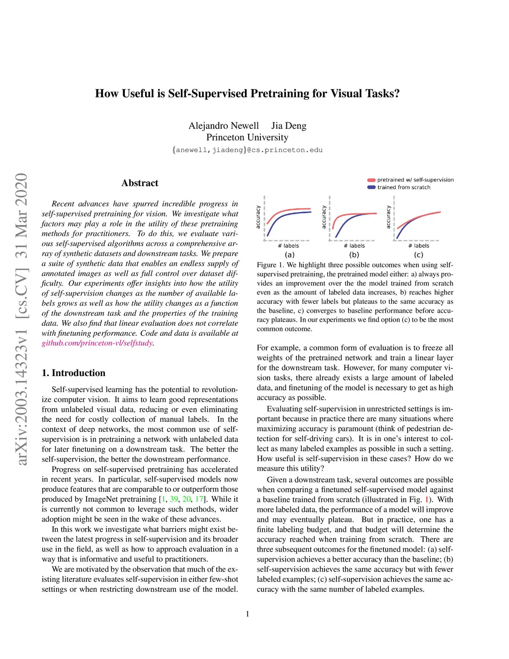 Recent advances have spurred incredible progress in self-supervised pretraining for vision. We investigate what factors may play a role in the utility of these pretraining methods for practitioners. To do this, we evaluate various self-supervised algorithms across a comprehensive array of synthetic datasets and downstream tasks. We prepare a suite of synthetic data that enables an endless supply of annotated images as well as full control over dataset difficulty. Our experiments offer insights into how the utility of self-supervision changes as the number of available labels grows as well as how the utility changes as a function of the downstream task and the properties of the training data. We also find that linear evaluation does not correlate with finetuning performance. Code and data is available at \href{https://www.github.com/princeton-vl/selfstudy}{github.com/princeton-vl/selfstudy}.