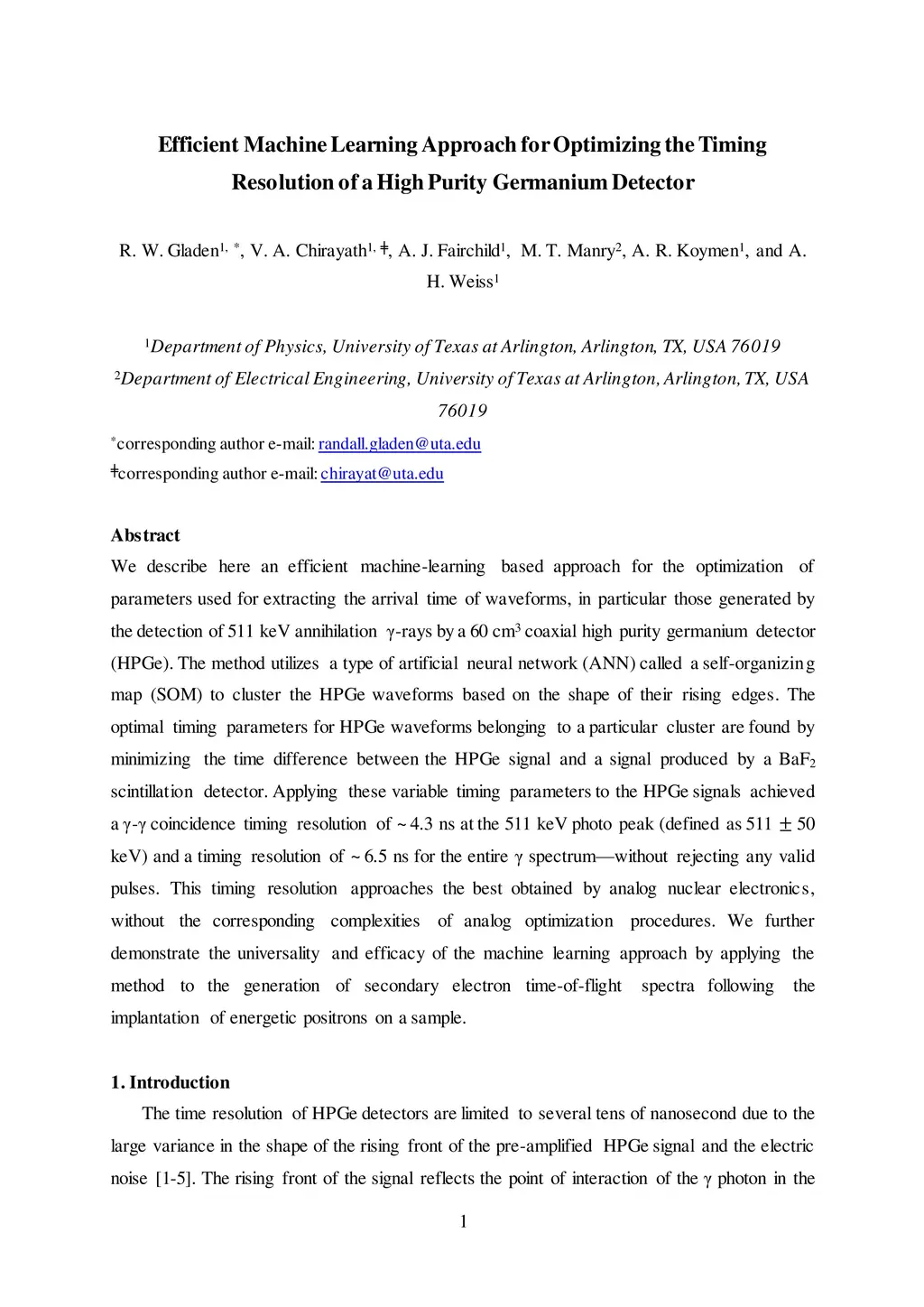 We describe here an efficient machine-learning based approach for the optimization of parameters used for extracting the arrival time of waveforms, in particular those generated by the detection of 511 keV annihilation gamma-rays by a 60 cm3 coaxial high purity germanium detector (HPGe). The method utilizes a type of artificial neural network (ANN) called a self-organizing map (SOM) to cluster the HPGe waveforms based on the shape of their rising edges. The optimal timing parameters for HPGe waveforms belonging to a particular cluster are found by minimizing the time difference between the HPGe signal and a signal produced by a BaF2 scintillation detector. Applying these variable timing parameters to the HPGe signals achieved a gamma-coincidence timing resolution of ~ 4.3 ns at the 511 keV photo peak (defined as 511 +- 50 keV) and a timing resolution of ~ 6.5 ns for the entire gamma spectrum--without rejecting any valid pulses. This timing resolution approaches the best obtained by analog nuclear electronics, without the corresponding complexities of analog optimization procedures. We further demonstrate the universality and efficacy of the machine learning approach by applying the method to the generation of secondary electron time-of-flight spectra following the implantation of energetic positrons on a sample.