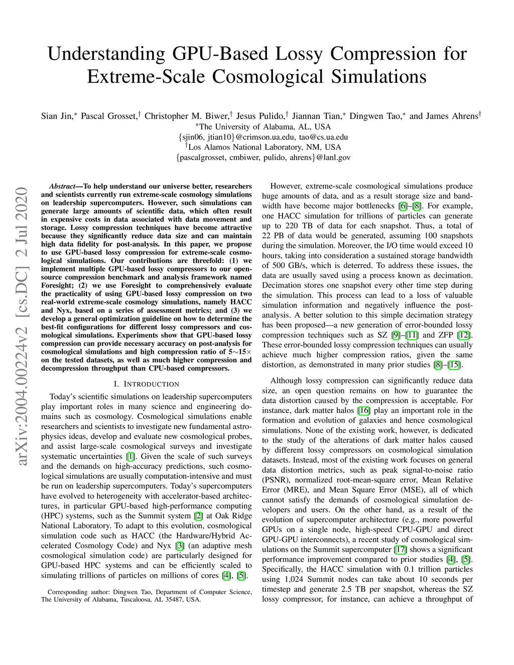 Understanding GPU-Based Lossy Compression for Extreme-Scale Cosmological