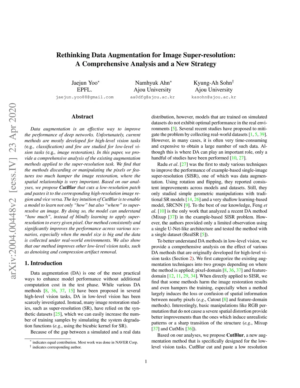 Data augmentation is an effective way to improve the performance of deep networks. Unfortunately, current methods are mostly developed for high-level vision tasks (e.g., classification) and few are studied for low-level vision tasks (e.g., image restoration). In this paper, we provide a comprehensive analysis of the existing augmentation methods applied to the super-resolution task. We find that the methods discarding or manipulating the pixels or features too much hamper the image restoration, where the spatial relationship is very important. Based on our analyses, we propose CutBlur that cuts a low-resolution patch and pastes it to the corresponding high-resolution image region and vice versa. The key intuition of CutBlur is to enable a model to learn not only "how" but also "where" to super-resolve an image. By doing so, the model can understand "how much", instead of blindly learning to apply super-resolution to every given pixel. Our method consistently and significantly improves the performance across various scenarios, especially when the model size is big and the data is collected under real-world environments. We also show that our method improves other low-level vision tasks, such as denoising and compression artifact removal.