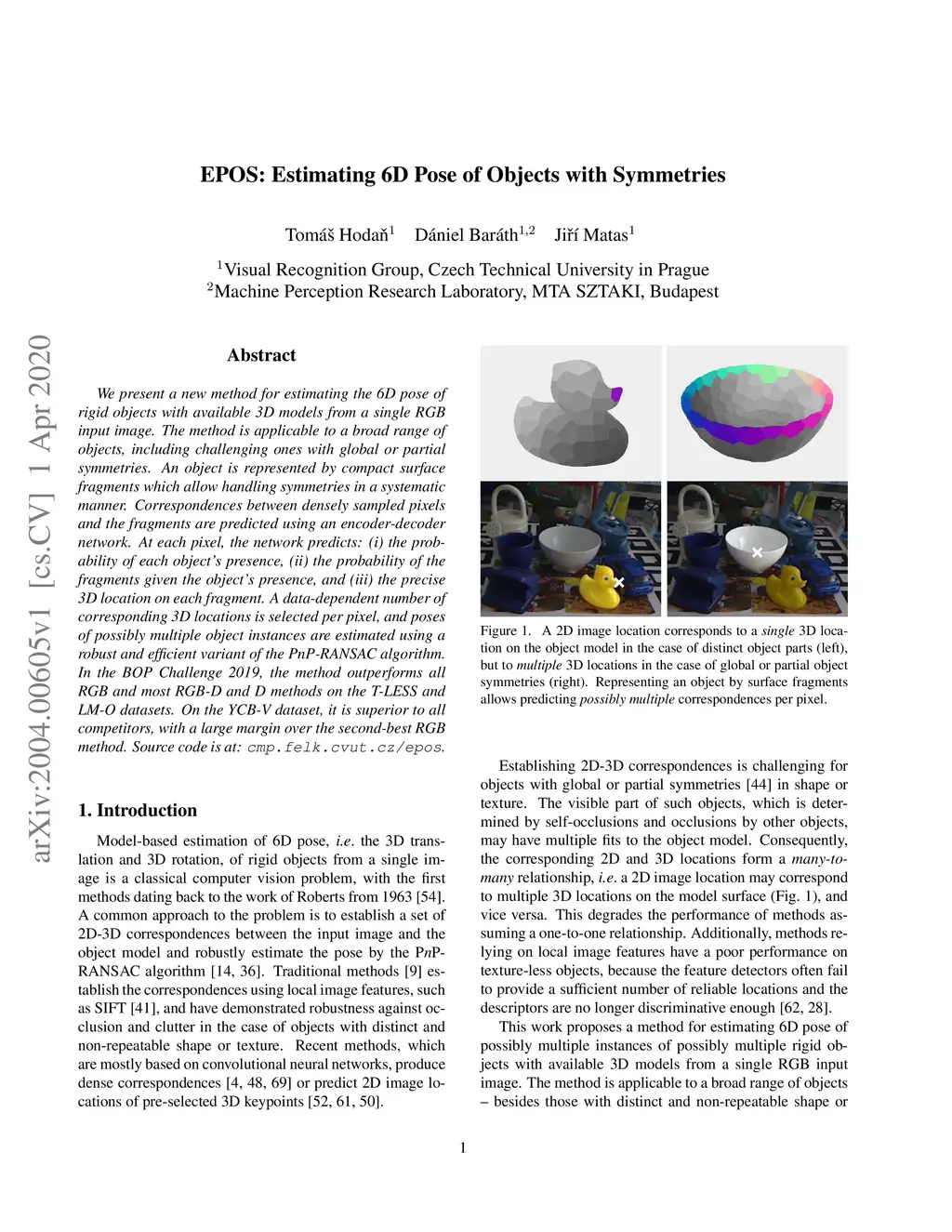 EPOS: Estimating 6D Pose of Objects with Symmetries
