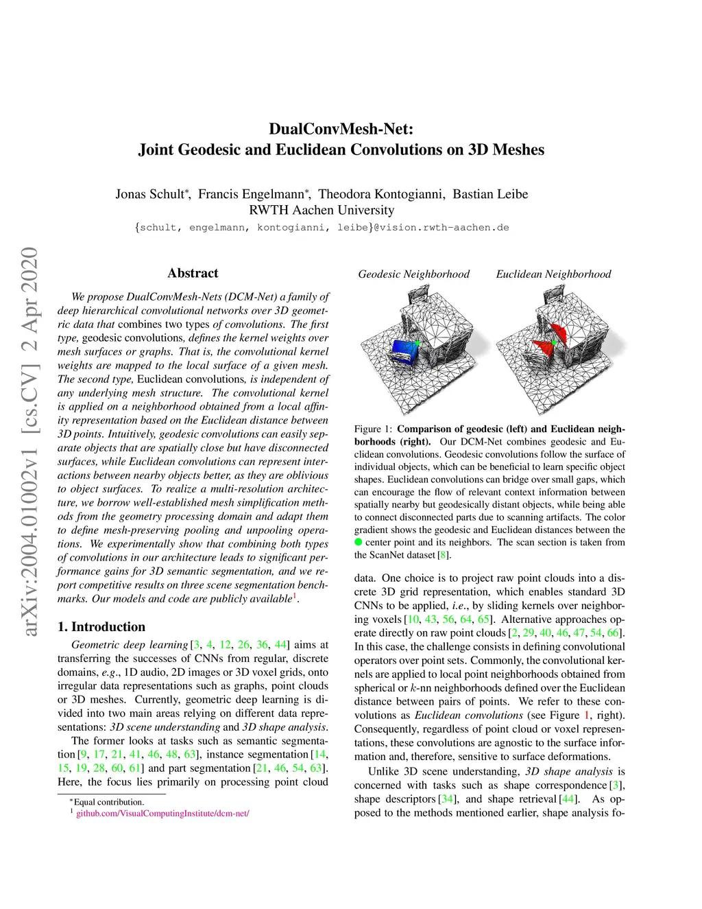 DualConvMesh-Net: Joint Geodesic and Euclidean Convolutions on 3D Meshes