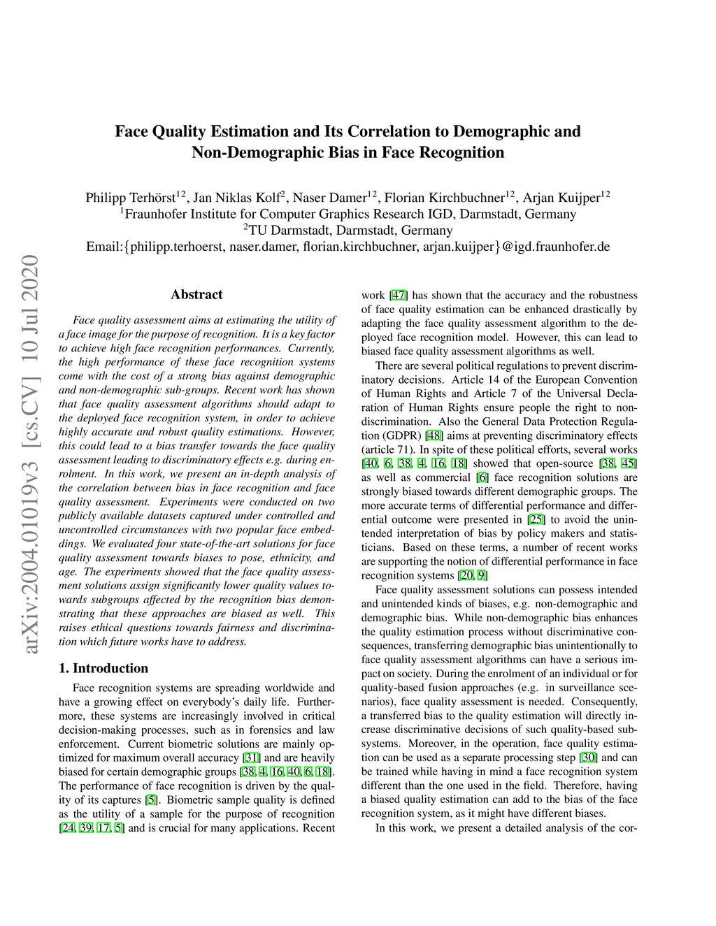 Face Quality Estimation and Its Correlation to Demographic and