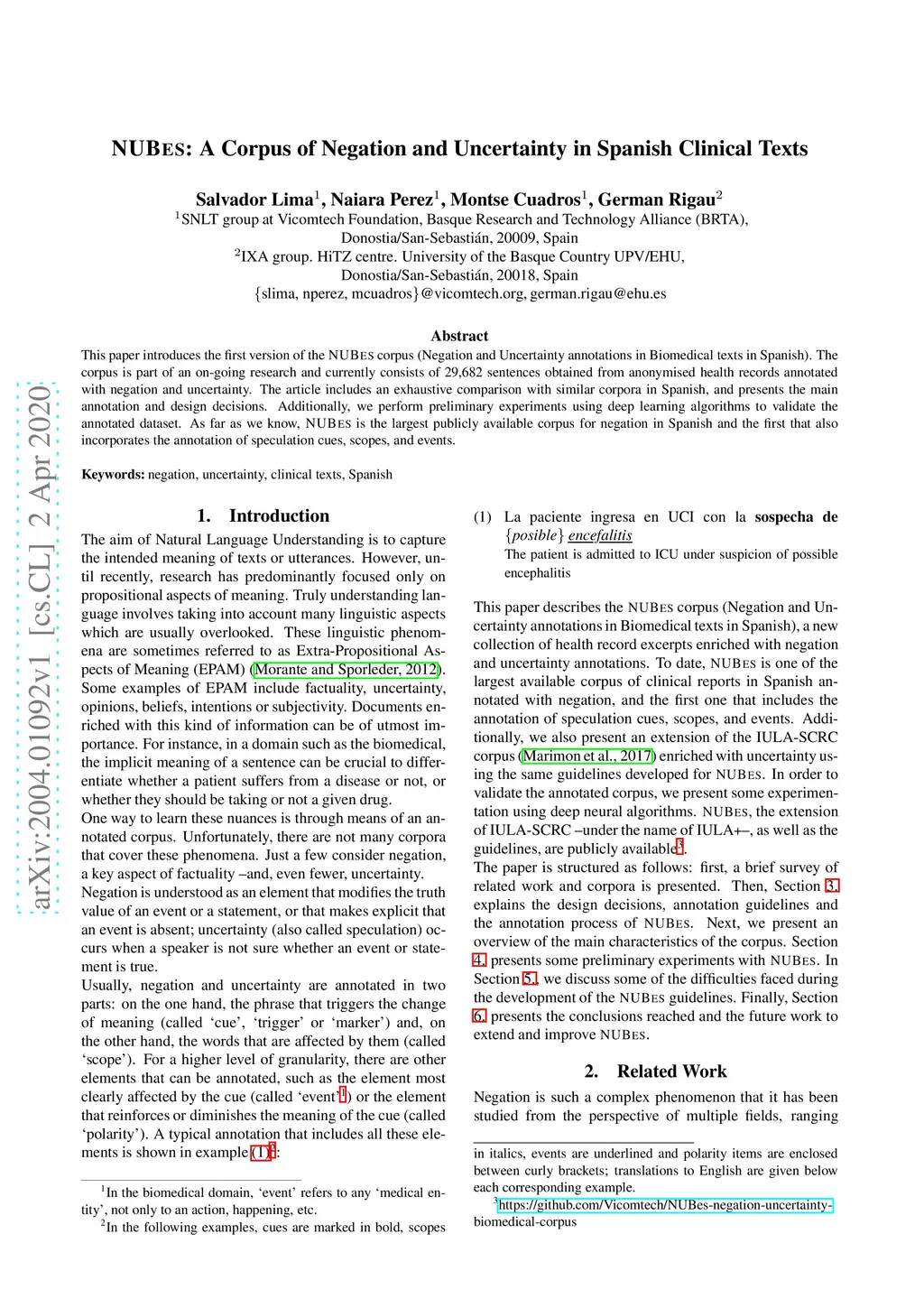 NUBES: A Corpus of Negation and Uncertainty in Spanish Clinical Texts