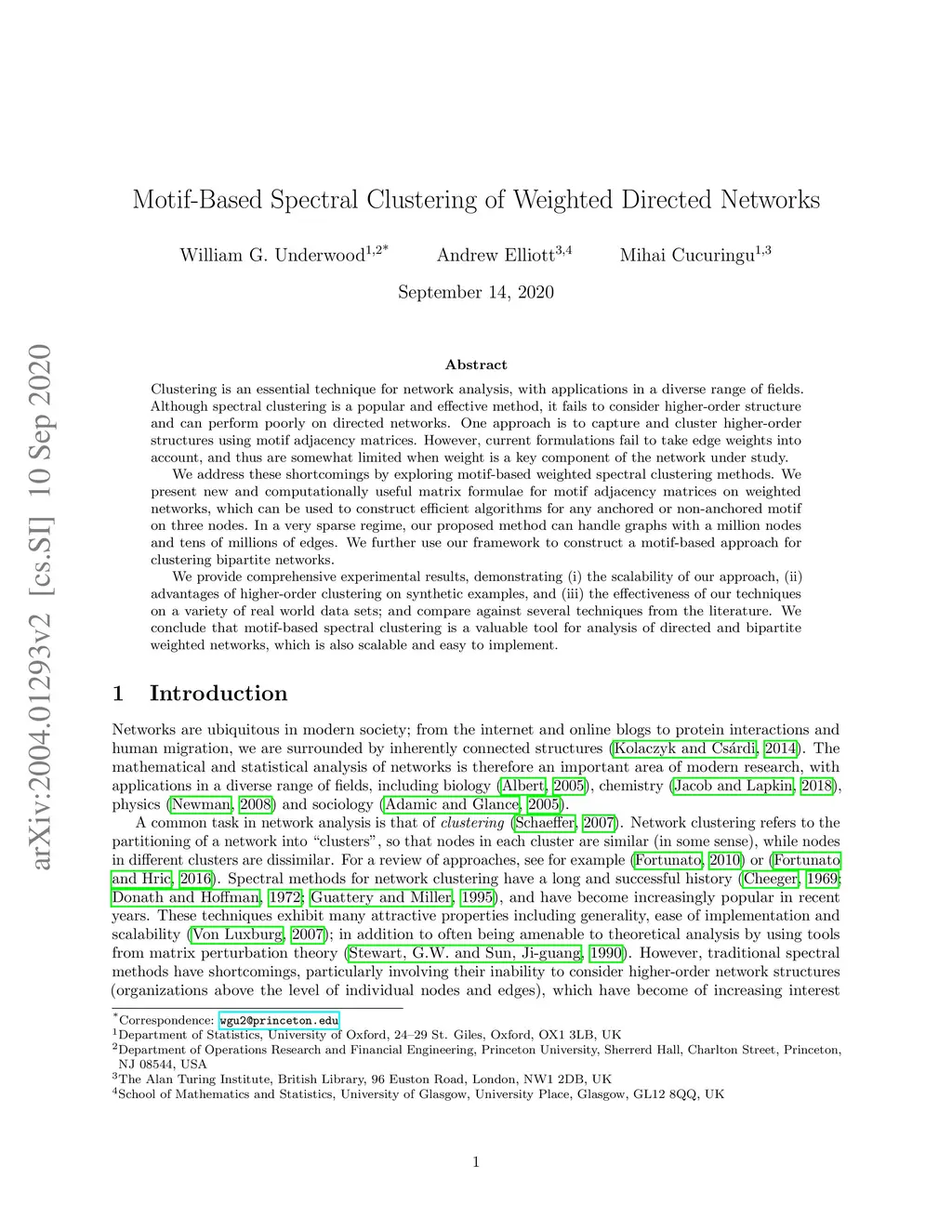 Motif-Based Spectral Clustering of Weighted Directed Networks