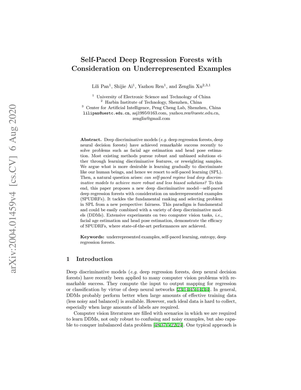 Self-Paced Deep Regression Forests with Consideration on Underrepresented Examples