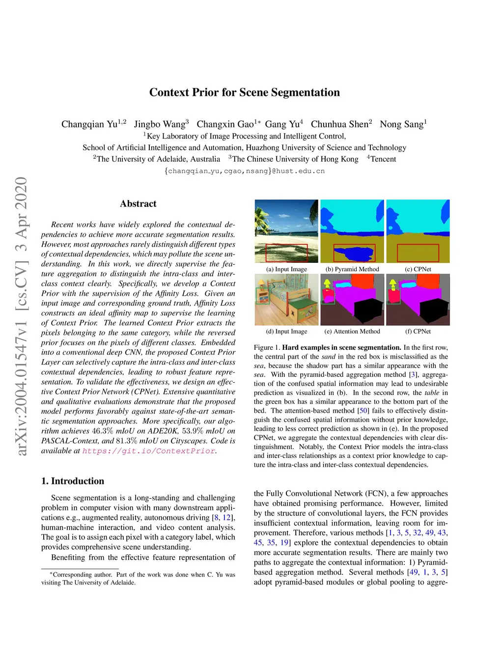 Recent works have widely explored the contextual dependencies to achieve more accurate segmentation results. However, most approaches rarely distinguish different types of contextual dependencies, which may pollute the scene understanding. In this work, we directly supervise the feature aggregation to distinguish the intra-class and inter-class context clearly. Specifically, we develop a Context Prior with the supervision of the Affinity Loss. Given an input image and corresponding ground truth, Affinity Loss constructs an ideal affinity map to supervise the learning of Context Prior. The learned Context Prior extracts the pixels belonging to the same category, while the reversed prior focuses on the pixels of different classes. Embedded into a conventional deep CNN, the proposed Context Prior Layer can selectively capture the intra-class and inter-class contextual dependencies, leading to robust feature representation. To validate the effectiveness, we design an effective Context Prior Network (CPNet). Extensive quantitative and qualitative evaluations demonstrate that the proposed model performs favorably against state-of-the-art semantic segmentation approaches. More specifically, our algorithm achieves 46.3% mIoU on ADE20K, 53.9% mIoU on PASCAL-Context, and 81.3% mIoU on Cityscapes. Code is available at https://git.io/ContextPrior.