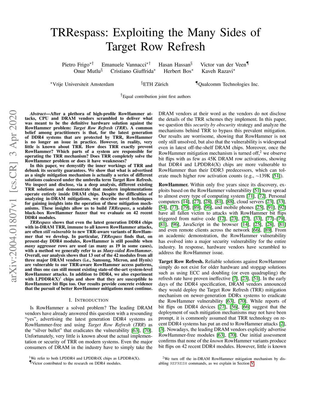 TRRespass: Exploiting the Many Sides of Target Row Refresh