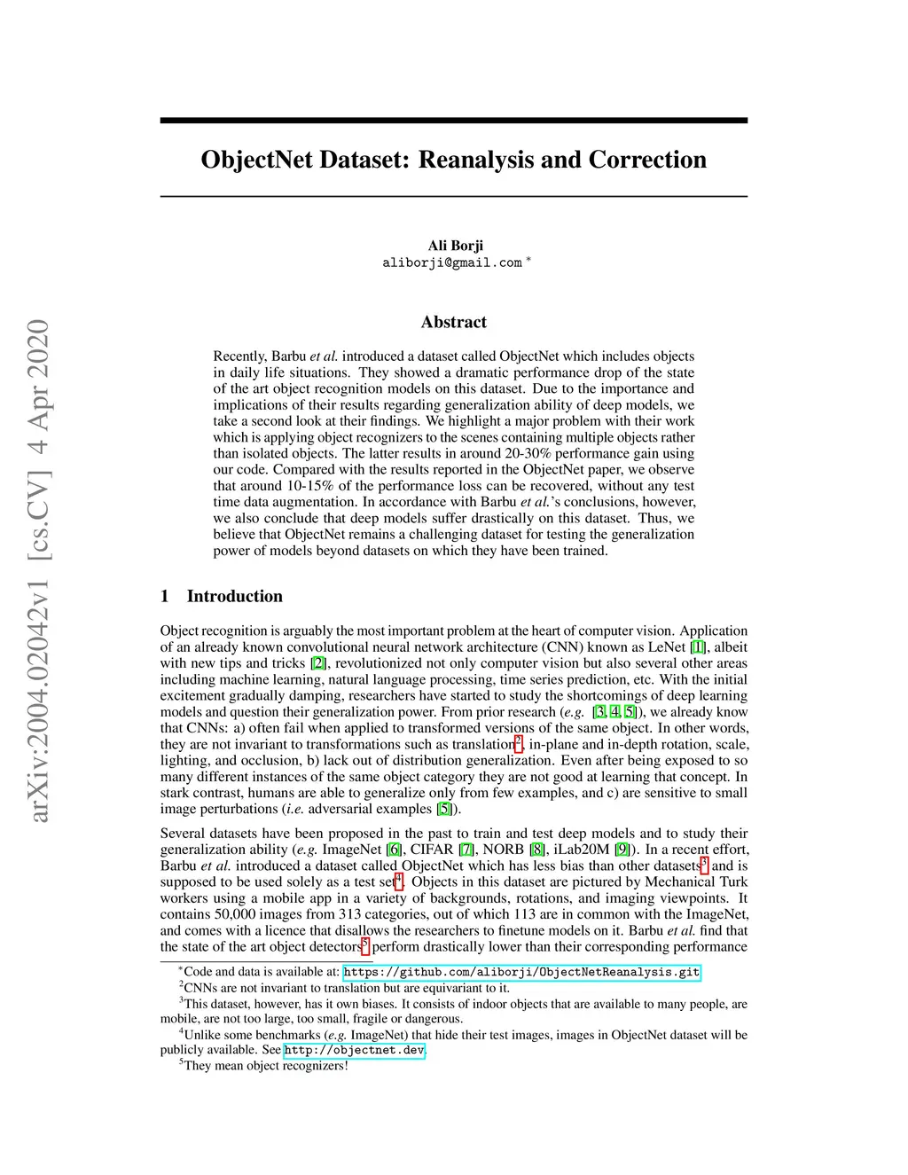 ObjectNet Dataset: Reanalysis and Correction