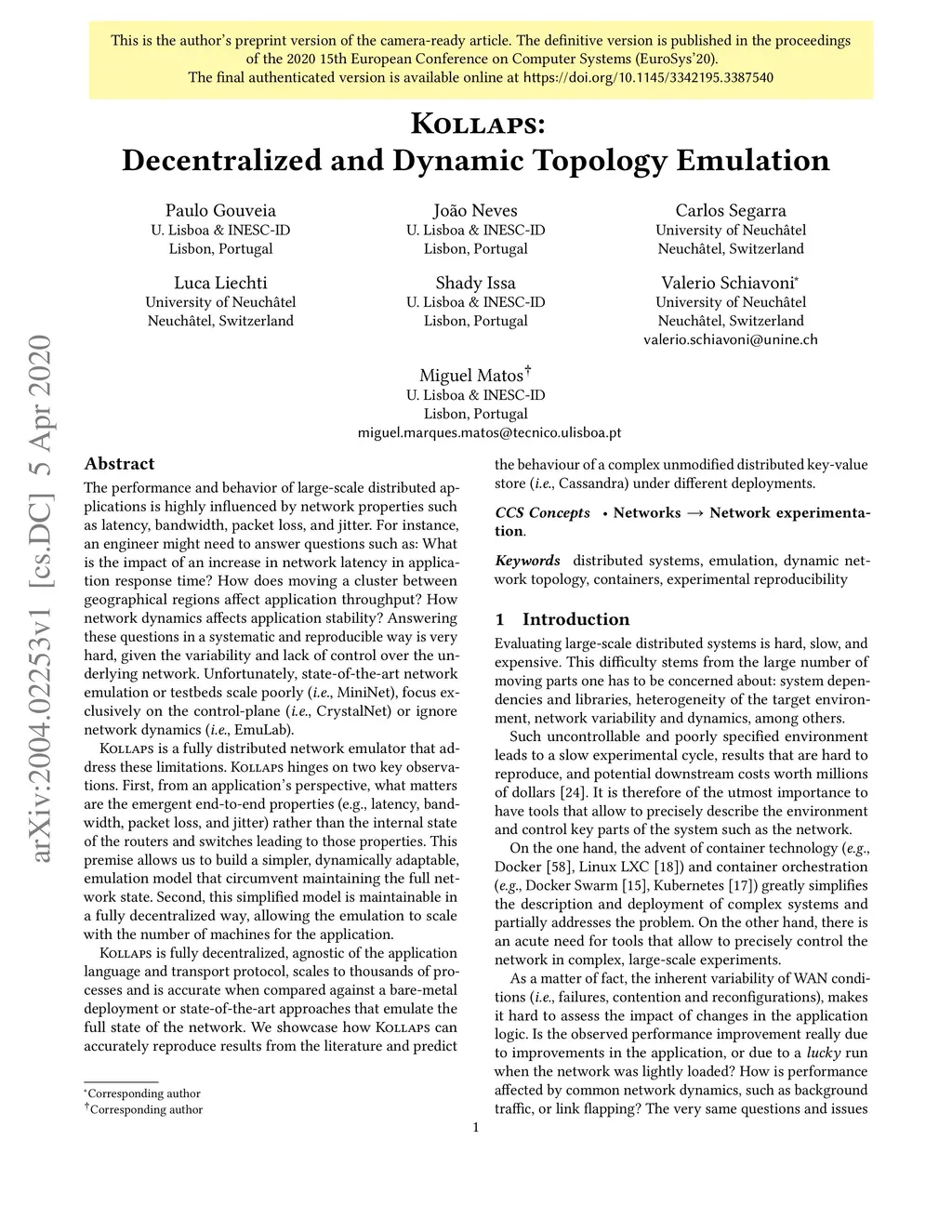 Kollaps: Decentralized and Dynamic Topology Emulation