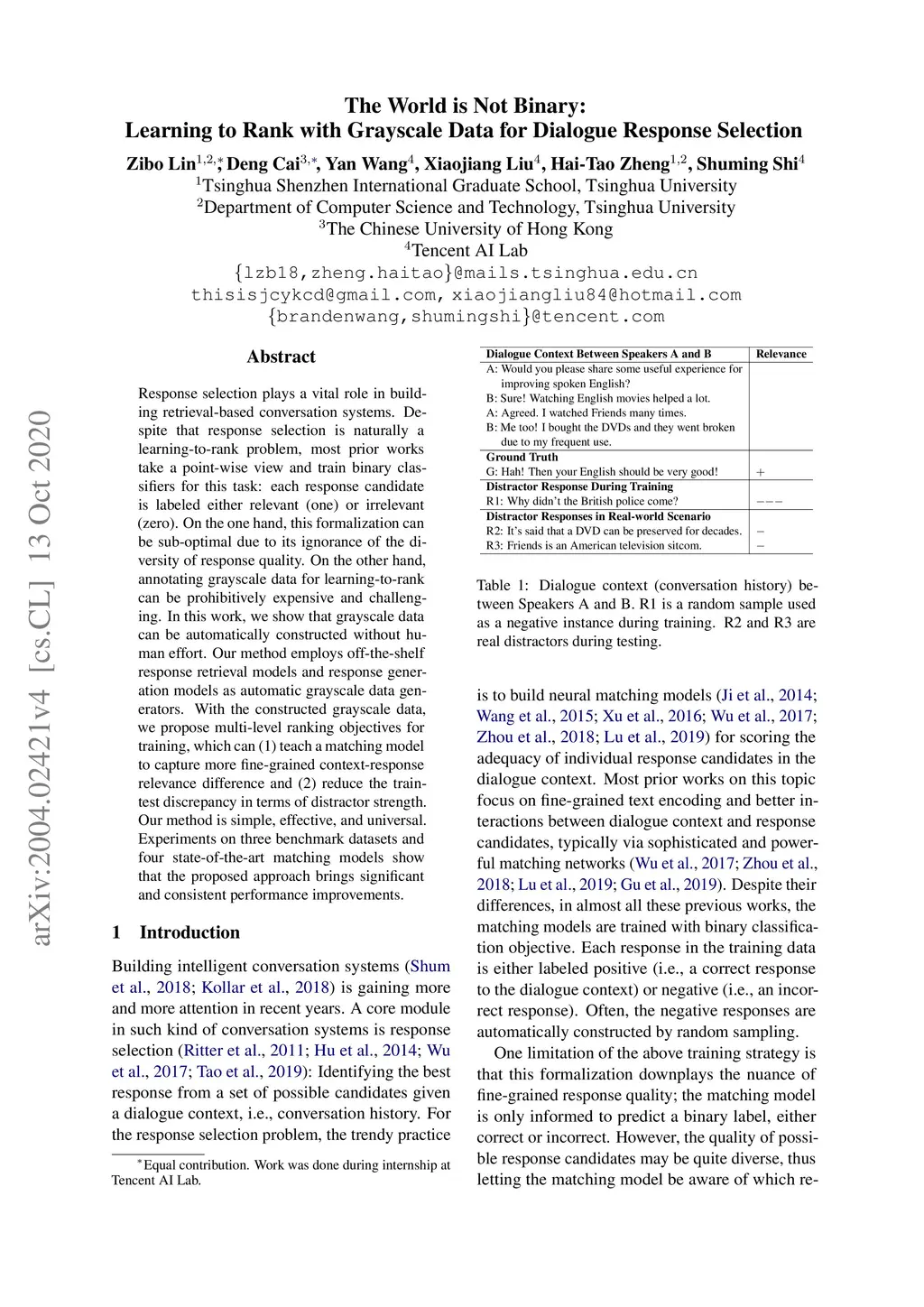 Response selection plays a vital role in building retrieval-based conversation systems. Despite that response selection is naturally a learning-to-rank problem, most prior works take a point-wise view and train binary classifiers for this task: each response candidate is labeled either relevant (one) or irrelevant (zero). On the one hand, this formalization can be sub-optimal due to its ignorance of the diversity of response quality. On the other hand, annotating grayscale data for learning-to-rank can be prohibitively expensive and challenging. In this work, we show that grayscale data can be automatically constructed without human effort. Our method employs off-the-shelf response retrieval models and response generation models as automatic grayscale data generators. With the constructed grayscale data, we propose multi-level ranking objectives for training, which can (1) teach a matching model to capture more fine-grained context-response relevance difference and (2) reduce the train-test discrepancy in terms of distractor strength. Our method is simple, effective, and universal. Experiments on three benchmark datasets and four state-of-the-art matching models show that the proposed approach brings significant and consistent performance improvements.