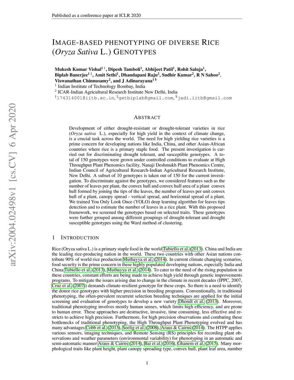 Image-based phenotyping of diverse Rice (Oryza Sativa L.) Genotypes
