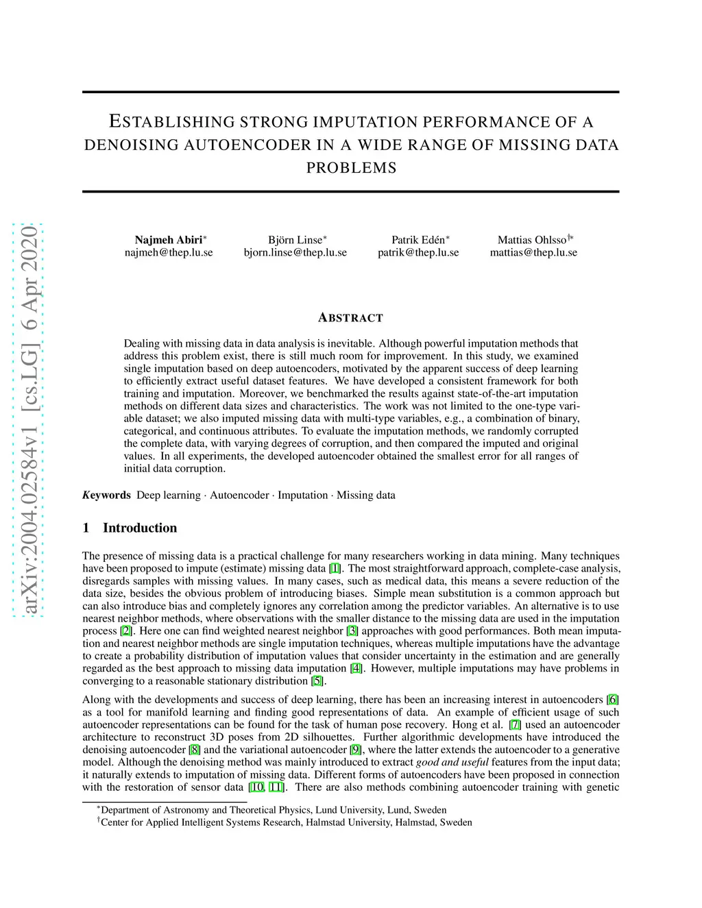 Dealing with missing data in data analysis is inevitable. Although powerful imputation methods that address this problem exist, there is still much room for improvement. In this study, we examined single imputation based on deep autoencoders, motivated by the apparent success of deep learning to efficiently extract useful dataset features. We have developed a consistent framework for both training and imputation. Moreover, we benchmarked the results against state-of-the-art imputation methods on different data sizes and characteristics. The work was not limited to the one-type variable dataset; we also imputed missing data with multi-type variables, e.g., a combination of binary, categorical, and continuous attributes. To evaluate the imputation methods, we randomly corrupted the complete data, with varying degrees of corruption, and then compared the imputed and original values. In all experiments, the developed autoencoder obtained the smallest error for all ranges of initial data corruption.
