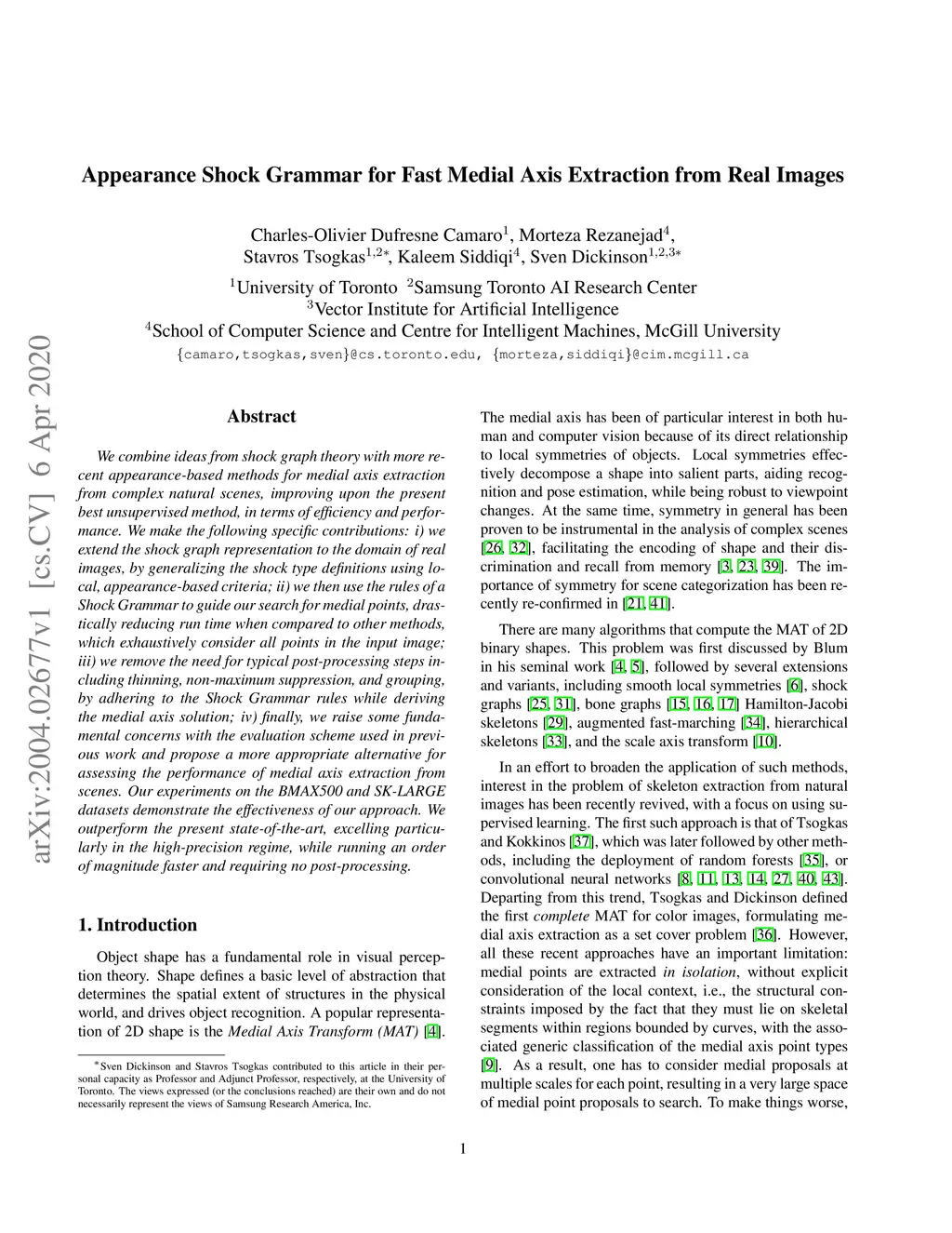 Appearance Shock Grammar for Fast Medial Axis Extraction from Real