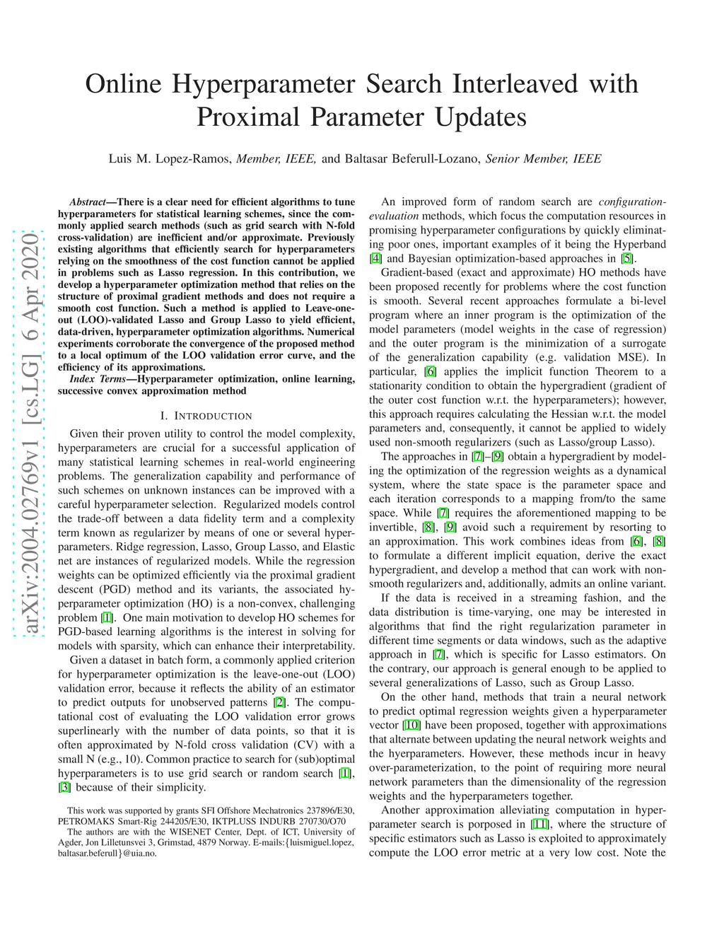 There is a clear need for efficient algorithms to tune hyperparameters for statistical learning schemes, since the commonly applied search methods (such as grid search with N-fold cross-validation) are inefficient and/or approximate. Previously existing algorithms that efficiently search for hyperparameters relying on the smoothness of the cost function cannot be applied in problems such as Lasso regression. In this contribution, we develop a hyperparameter optimization method that relies on the structure of proximal gradient methods and does not require a smooth cost function. Such a method is applied to Leave-one-out (LOO)-validated Lasso and Group Lasso to yield efficient, data-driven, hyperparameter optimization algorithms. Numerical experiments corroborate the convergence of the proposed method to a local optimum of the LOO validation error curve, and the efficiency of its approximations.