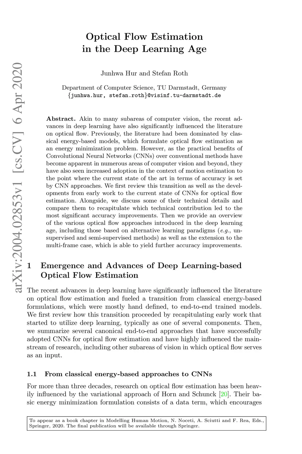 Akin to many subareas of computer vision, the recent advances in deep learning have also significantly influenced the literature on optical flow. Previously, the literature had been dominated by classical energy-based models, which formulate optical flow estimation as an energy minimization problem. However, as the practical benefits of Convolutional Neural Networks (CNNs) over conventional methods have become apparent in numerous areas of computer vision and beyond, they have also seen increased adoption in the context of motion estimation to the point where the current state of the art in terms of accuracy is set by CNN approaches. We first review this transition as well as the developments from early work to the current state of CNNs for optical flow estimation. Alongside, we discuss some of their technical details and compare them to recapitulate which technical contribution led to the most significant accuracy improvements. Then we provide an overview of the various optical flow approaches introduced in the deep learning age, including those based on alternative learning paradigms (e.g., unsupervised and semi-supervised methods) as well as the extension to the multi-frame case, which is able to yield further accuracy improvements.