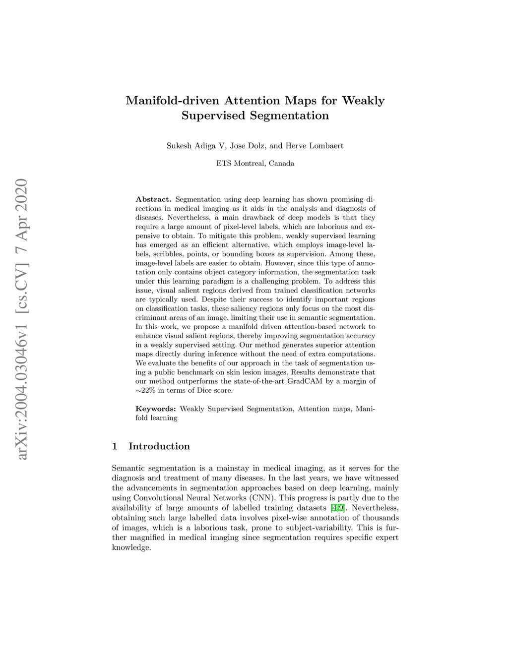 Manifold-driven Attention Maps for Weakly Supervised Segmentation